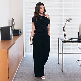 Bộ quần dài ống suông áo xếp ly vai chất chéo ý thoáng mát| Set công sở thanh lịch Cardina