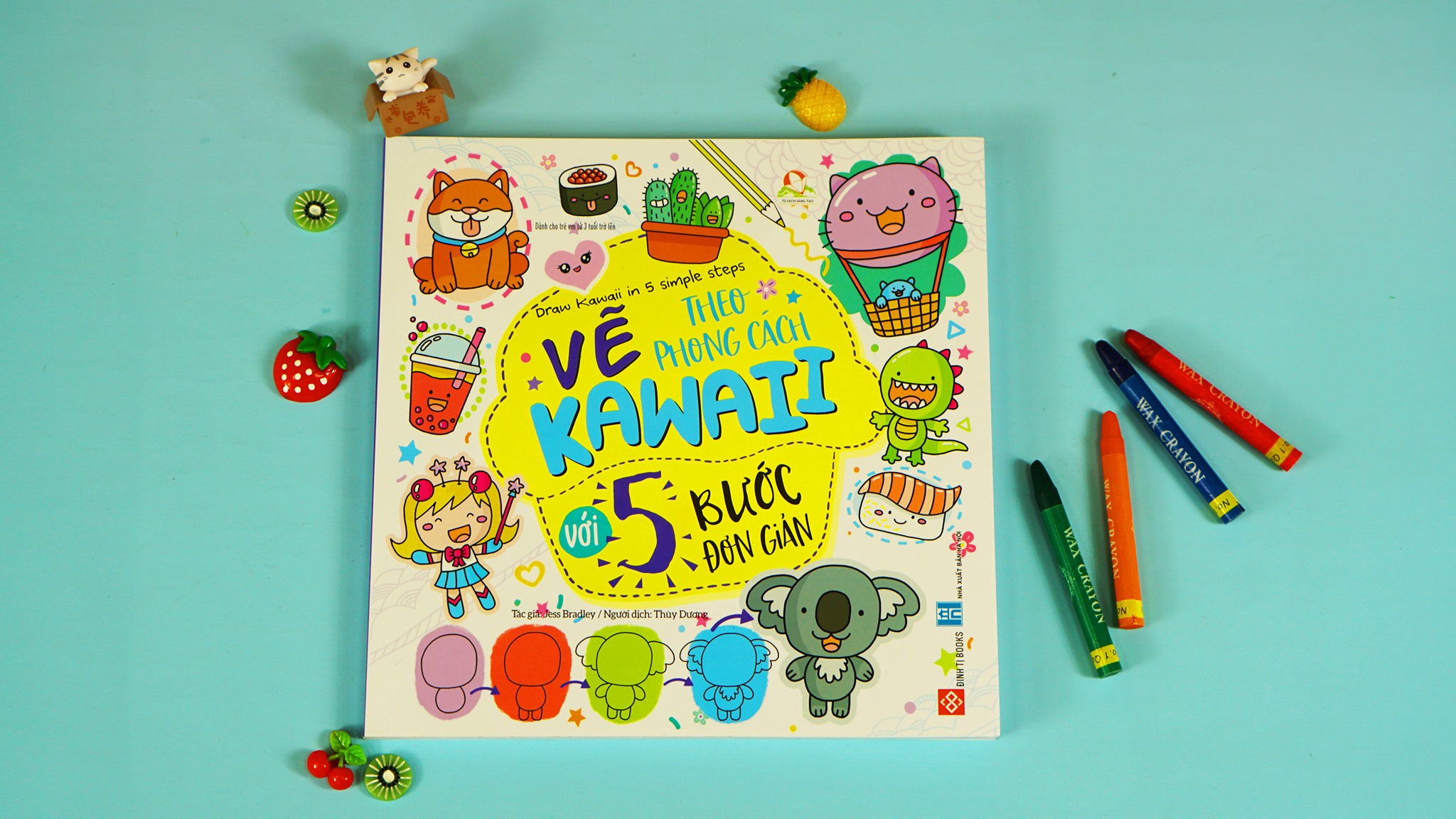 Em đã sẵn sàng trổ tài hội họa chỉ với 5 bước vẽ chưa? Từ chú tắc kè hoa sặc sỡ cho đến chú chim công đỏm dáng, từ chiếc thuyền đang dong buồm ra khơi cho đến ngọn hải đăng đang chiếu sáng rực rỡ, tất cả đều có trong Draw Kawaii in 5 simple steps - Vẽ theo phong cách Kawaii với 5 bước đơn giản. Ngoài hướng dẫn chi tiết, trong cuốn sách còn có một khoảng trống thật lớn để em thực hành ngay lập tức nữa đấy.