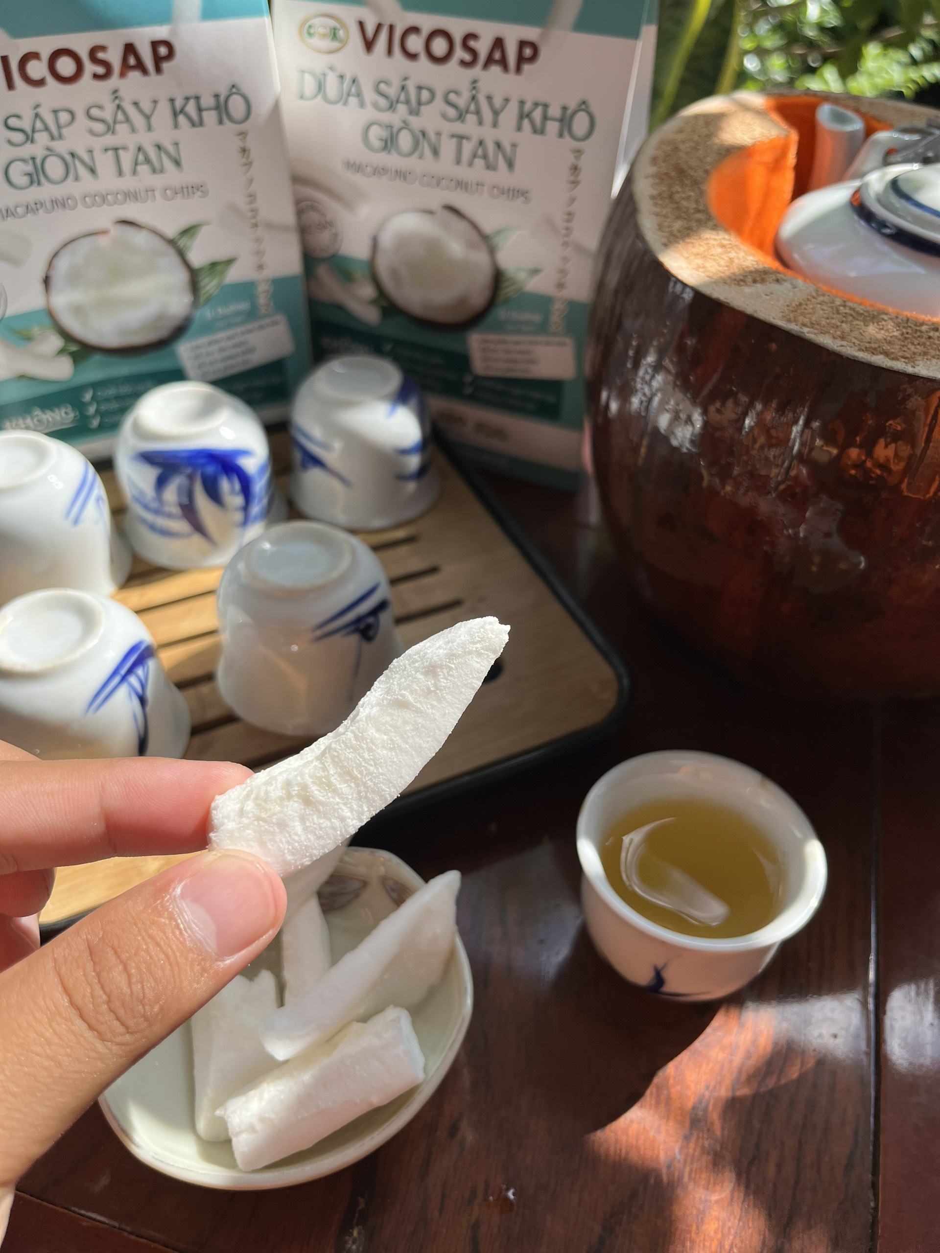✨Dừa sáp sấy giòn cao cấp VICOSAP ít đường đồ ăn vặt healthy đặc sản Trà Vinh hộp 25g