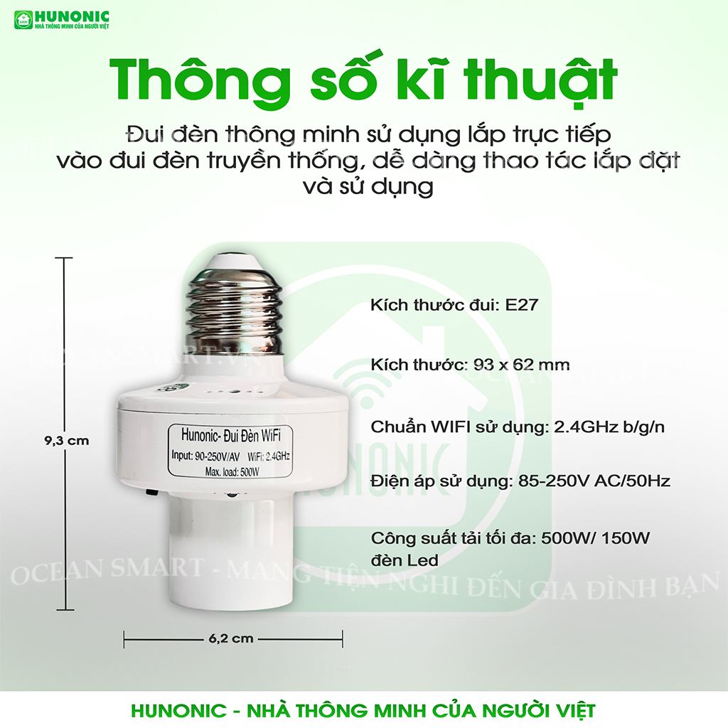 Hướng Dẫn Cài Đặt Đui Đèn Wifi | Đui Đèn Thông Minh Hunonic | OCEANSMART.VN