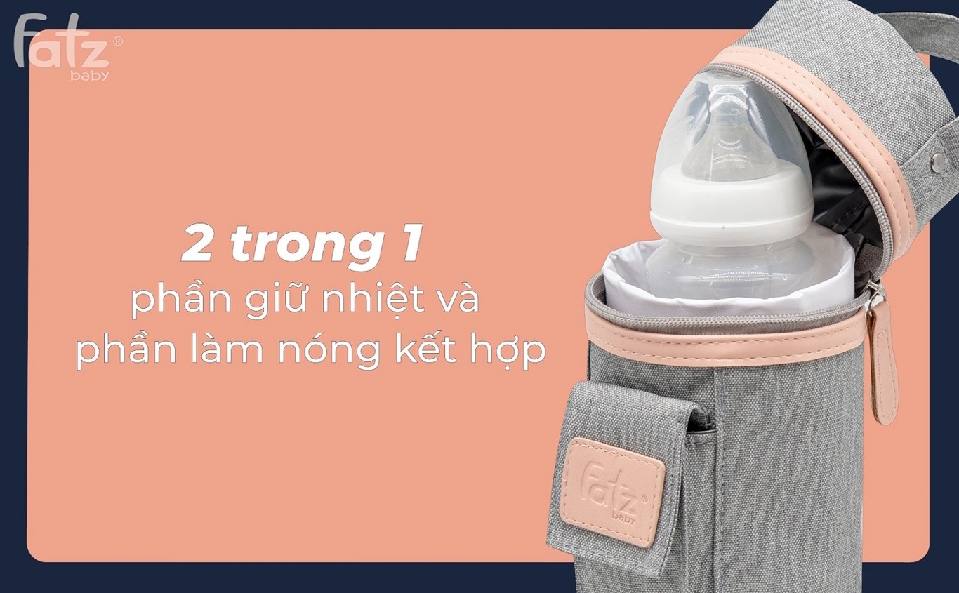+ Đặt bình sữa hoặc bình nước vào bên trong bộ phận làm nóng và đặt trong túi.