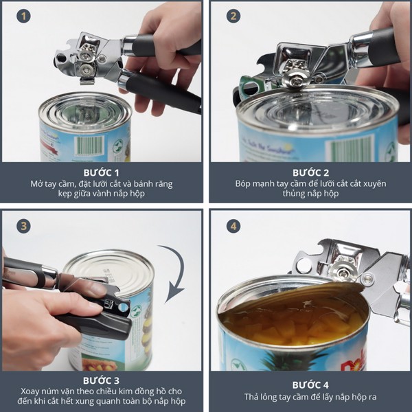 Bên cạnh đó, sản phẩm còn tích hợp chức năng khui nắp chai/lon tiện dụng giúp bạn ‘chinh phục’ tất cả các loại nắp hộp/lon/chai một cách dễ dàng.