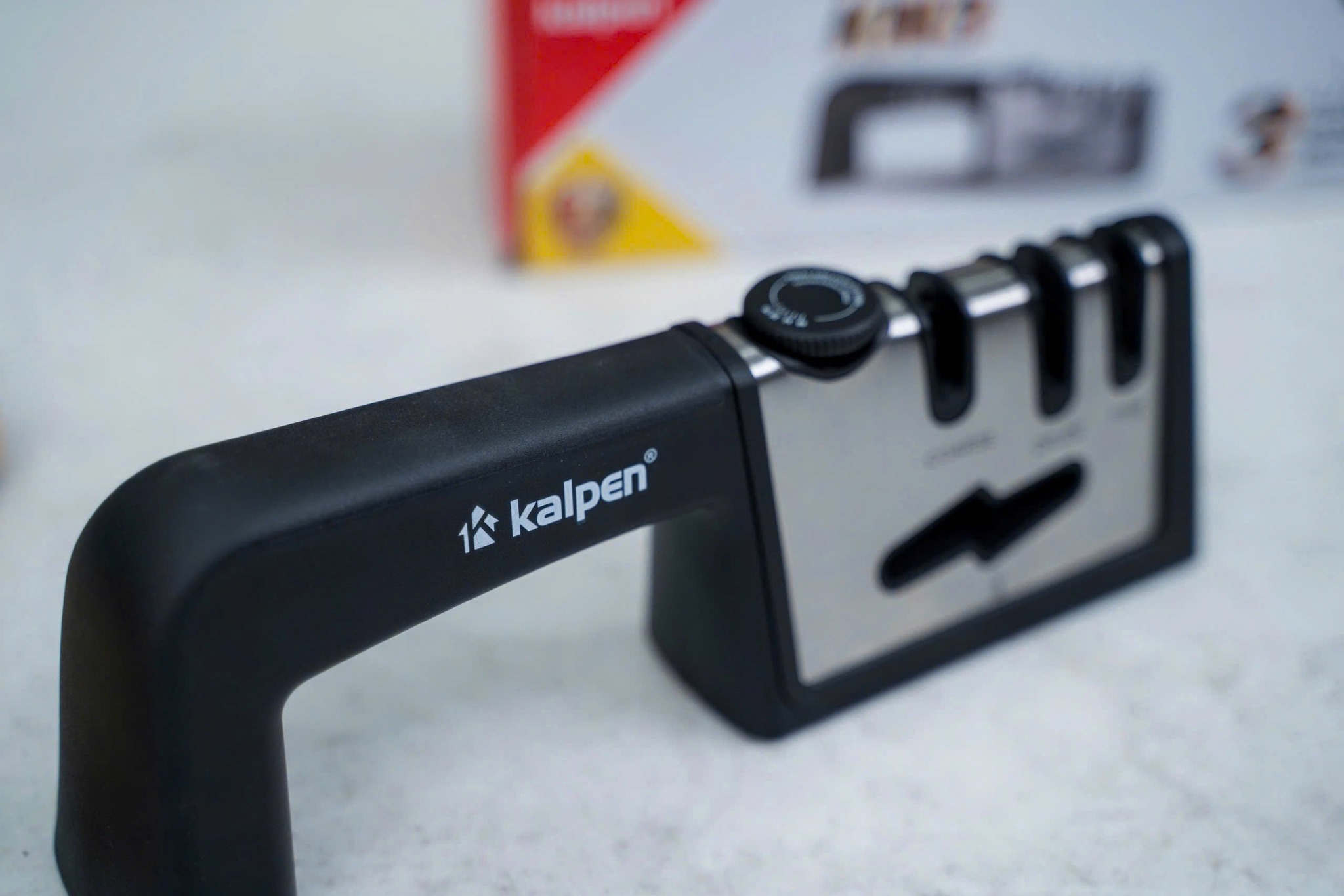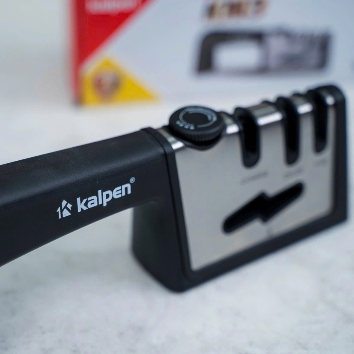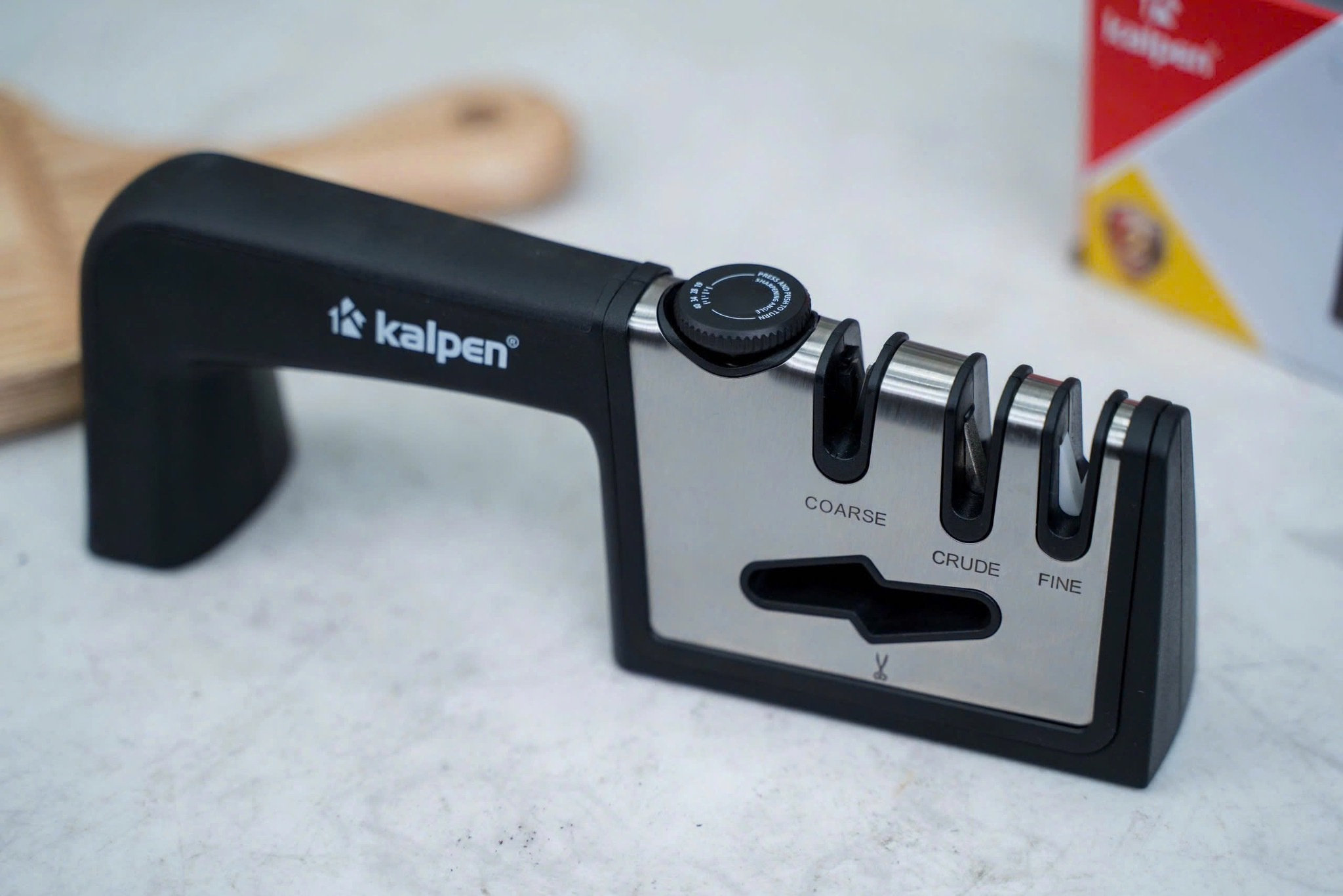 Dụng cụ mài dao kéo Kalpen là một trợ thủ đắc lực trong nhà bếp để mài sắc bén dao kéo và các dụng cụ cắt thái một cách nhanh chóng, tiết kiệm thời gian, công sức.