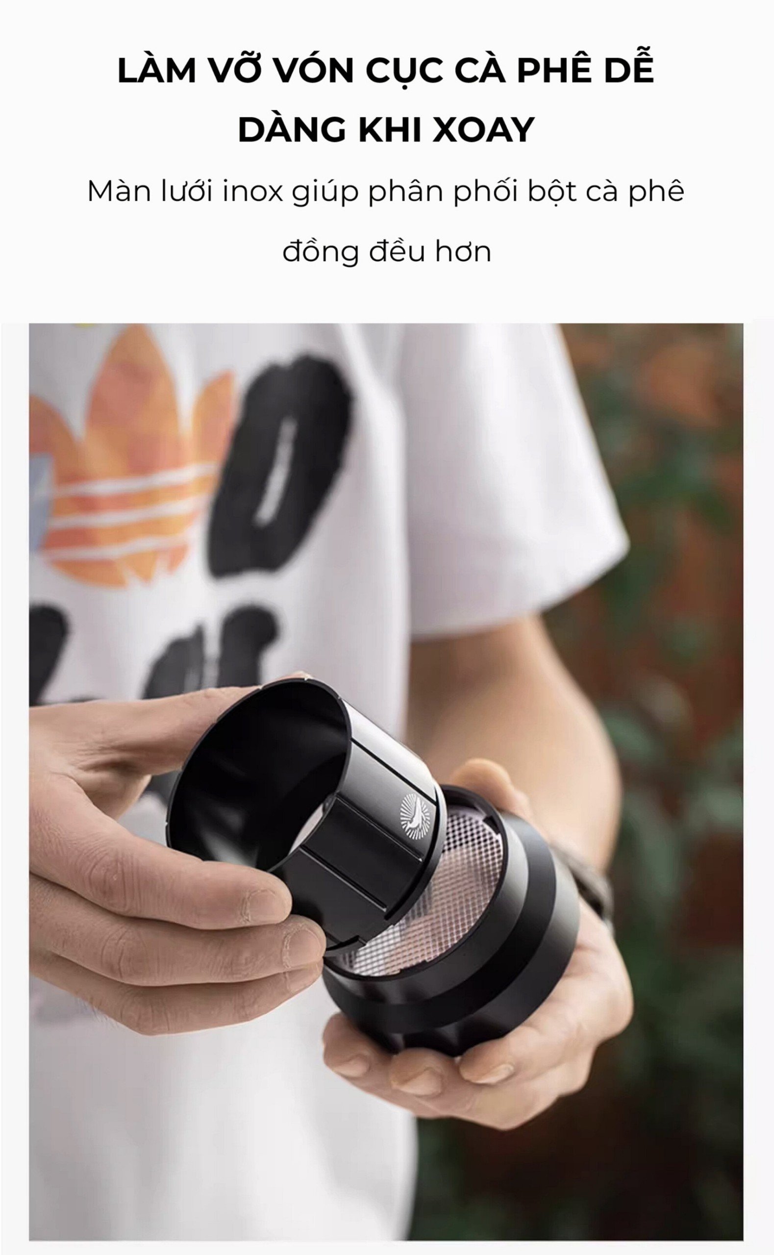 FEEPIE KIM XOAY TÁN BỘT CÓ VÒNG ĐỆM CAO SU – TỐI ƯU CHIẾT XUẤT, CẢI THIỆN CREMA! Bạn muốn phân bố bột cà phê đều hơn, hạn chế kênh rãnh để có chiết xuất