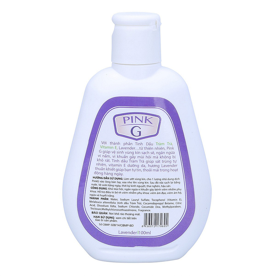 Dung Dịch Vệ Sinh Phụ Nữ Pink G Hương Lavender là dung dịch được nghiên cứu và chế tạo dành riêng cho việc vệ sinh vùng kín, nhằm phòng ngừa và giảm thiểu bệnh phụ khoa. Dung dịch chứa các thành phần từ tinh dầu thiên nhiên giúp làm sạch nhẹ nhàng vùng kín mà vẫn giữ được độ ẩm, giúp cân bằng da và rất an toàn.