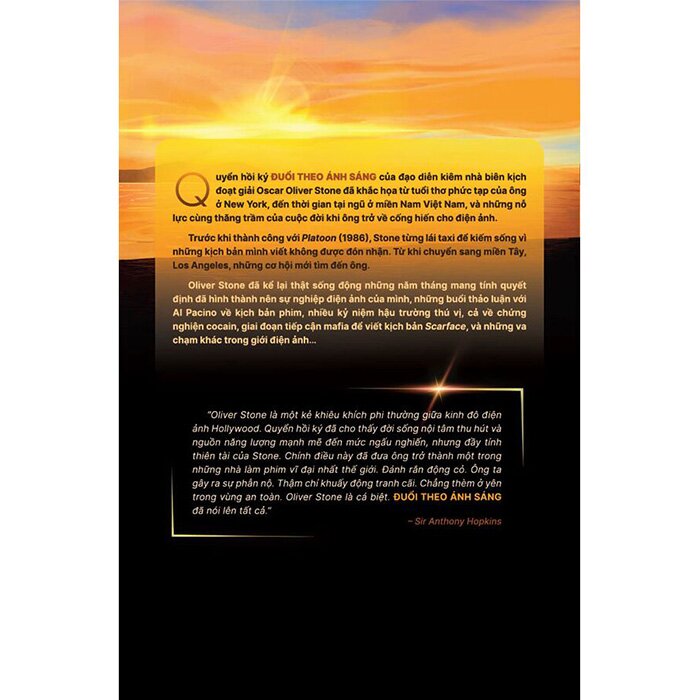 Đuổi Theo Ánh SángQuyển hồi ký Đuổi theo ánh sáng của đạo diễn kiêm nhà biên kịch đoạt giải Oscar Oliver Stone đã khắc họa từ tuổi thơ phức tạp ở New York, đến thời gian tại ngũ ở miền Nam Việt Nam, ...
