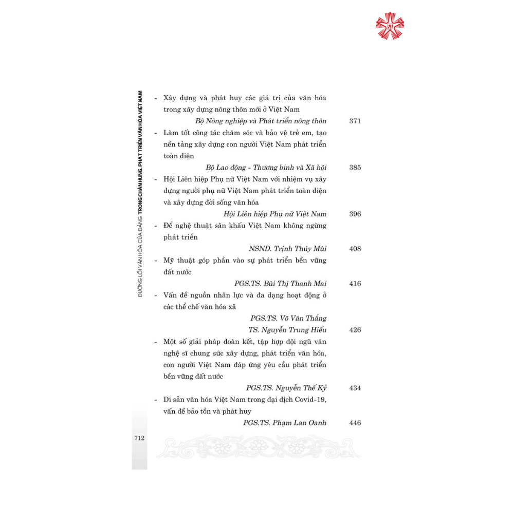 Nội dung gồm các văn bản chỉ đạo mới của Đảng, Nhà nước về chủ trương, đường lối văn hóa trong bối cảnh mới; toàn văn bài viết, phát biểu của Tổng Bí thư Nguyễn Phú Trọng tại Hội nghị văn hóa toàn quốc, tháng 11/2021. Cùng với các bài viết lý luận về xây dựng hệ giá trị văn hóa Việt Nam trong giai đoạn mới và việc tổ chức thực hiện ở một số cơ quan, bộ, ngành, địa phương…