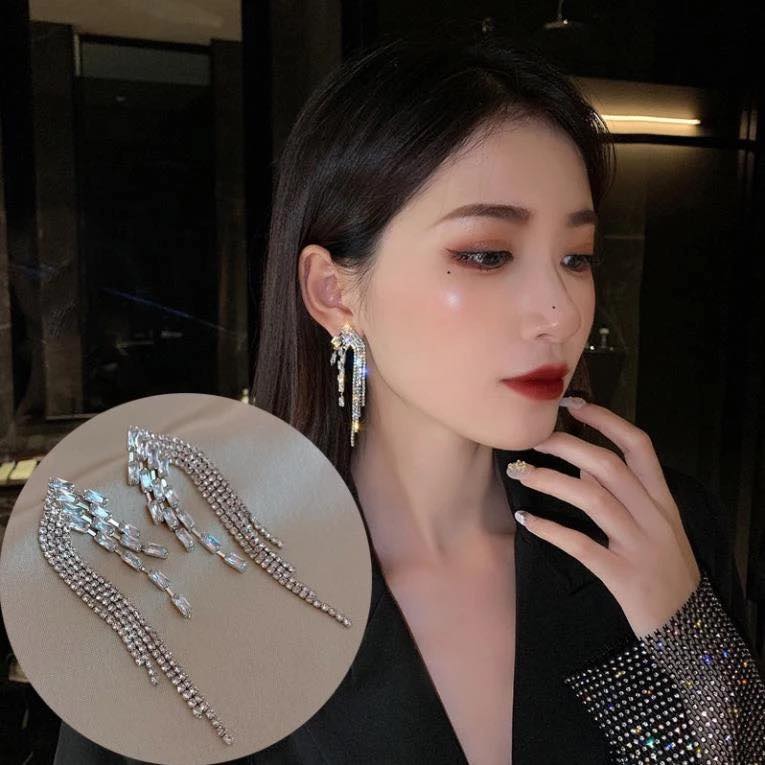 ✨Earrings nữ đeo tai dáng dài chảy gắn đá cao cấp