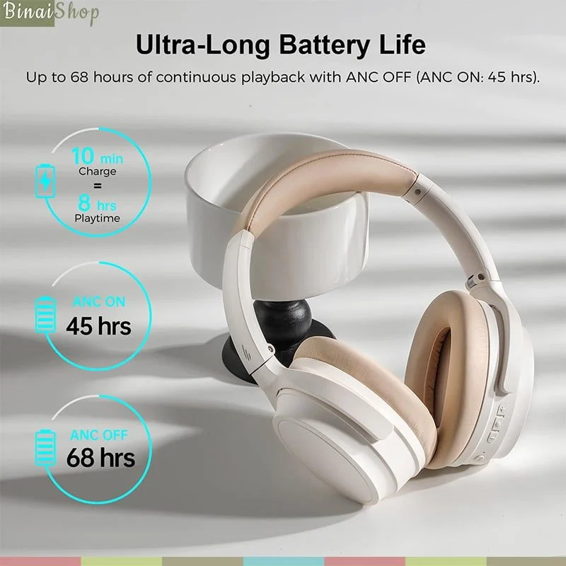 - Thời lượng pin dài lên đến 68 giờ (phát nhạc thông thường), 45 giờ đói với ANC. Hỗ trợ sạc nhanh, chỉ sạc 10 phút cho thời gian sử dụng lên đến 8 giờ;