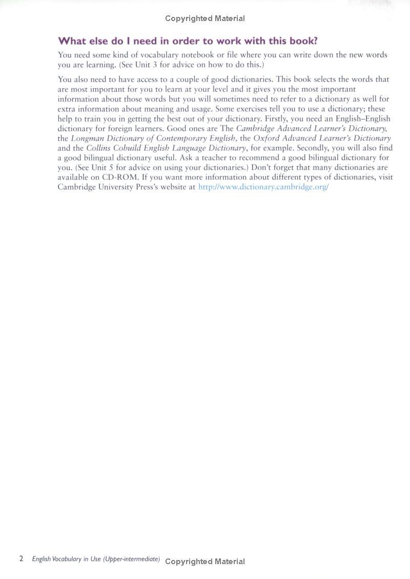 The words you need to communicate with confidence. Vocabulary explanations and practice for upper-intermediate level (B2) learners of English. Perfect for both self-study and classroom activities. Quickly expand your vocabulary with over 100 units of easy to understand explanations and practice exercises. Be confident about what you are learning, thanks to Cambridge research into how English is really spoken and written, and get better at studying by yourself, with units on learning vocabulary, personalised practice and an easy to use answer key.
