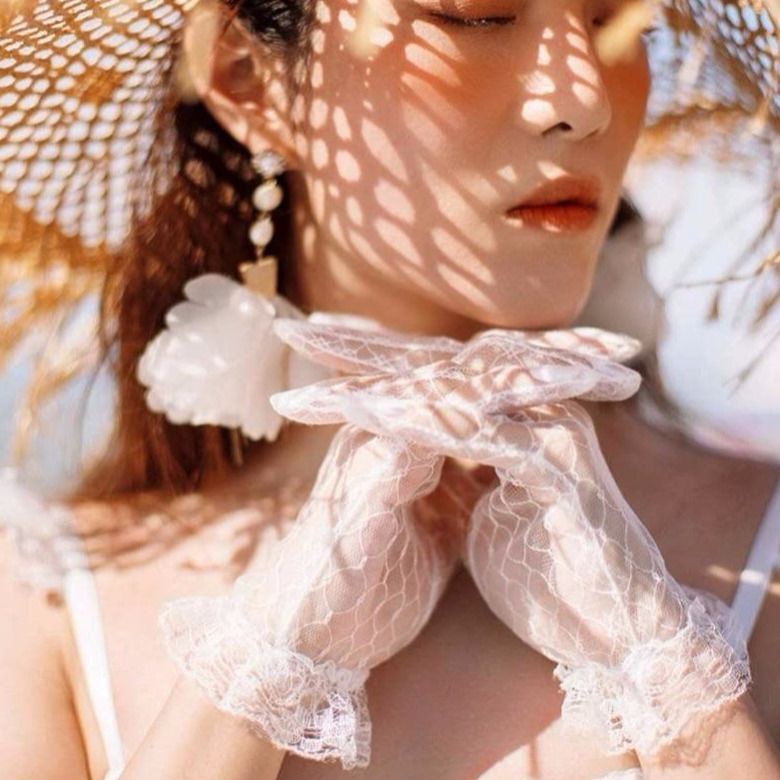 Mua tại TiktokGăng tay Cô dâu và Dạ hội MS: 37513 Chất liệu: ren mắt cáo, cổ găng đính ruy băng Màu sắc: trắng kem