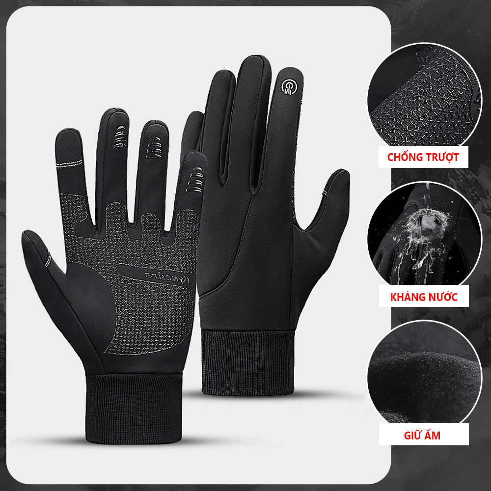 Găng tay cảm ứng điện thoại găng tay chống nước, đi xe máy mùa đông có lót nỉ chắn gió giữ ấm