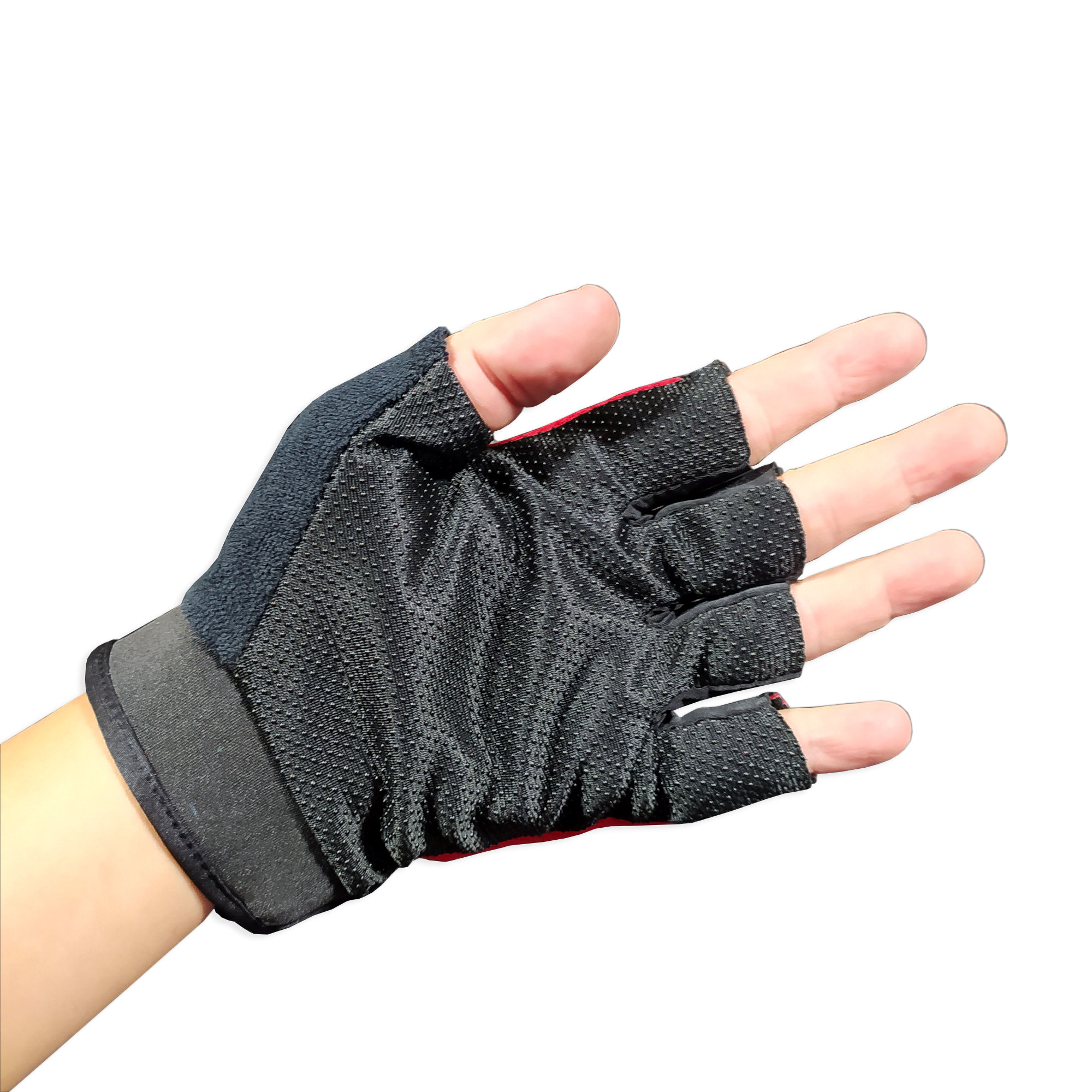 Găng tay thể thao thiết kế hở ngón tăng cảm giác lái, sử dụng được với điện thoại. Có gù nhựa cứng bảo vệ khỏi va chạm. Nút cao su trong lòng bàn tay tăng