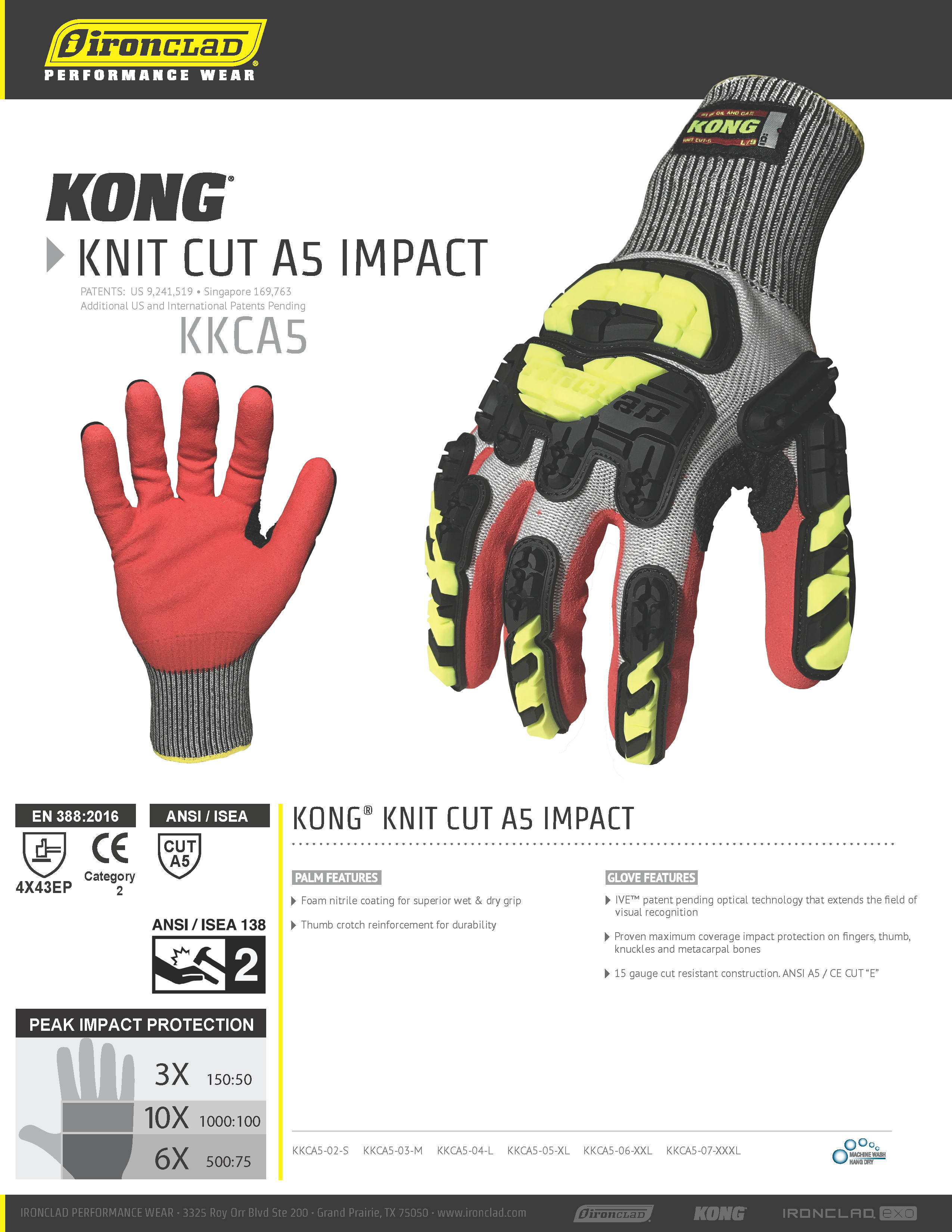 GĂNG TAY KONG CHỐNG CẮT, CHỐNG VA ĐẬP CHÍNH HÃNG - CODE KKCA5 HÃNG: IRONCLAD KONG KNIT ABRASION C5 KKCA5 Standard: EN 388:2016 (4X43EP), ANSI 105 (CUT A5) IVE PATENT PENDING OPTICAL TECHNOLOGY THAT