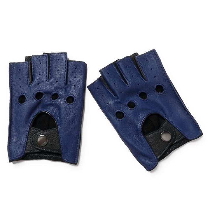 ✨Găng tay nam hở ngón da cừu nguyên tấm BHY8853 màu Xanh dương, Bao da lái xe