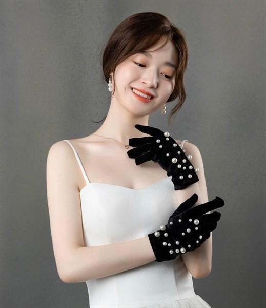✨Găng tay nhung đen đính hạt 6-2022 Giangpkc