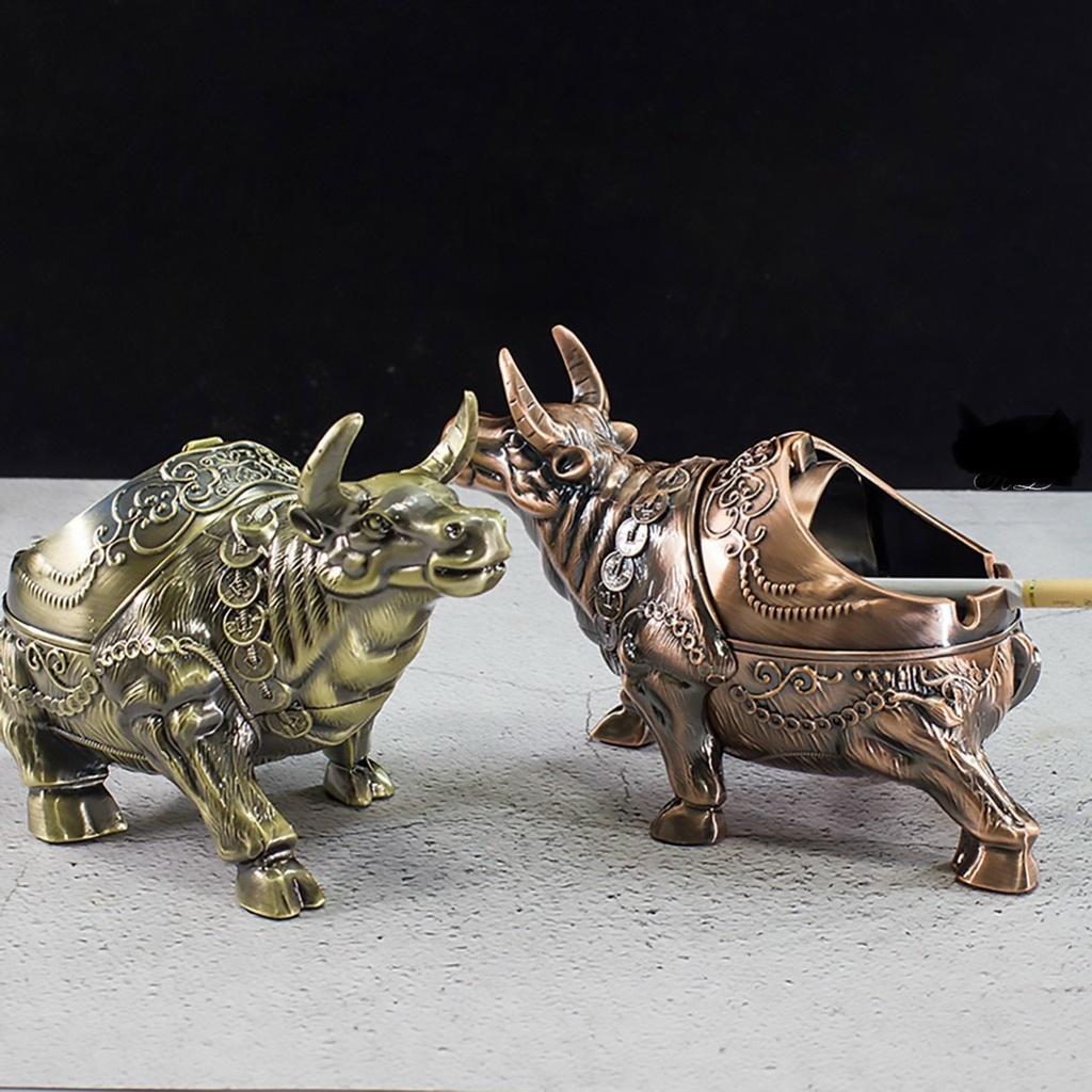 ên sản phẩm : Gạt tàn Trâu đồng Kích thước sản phẩm: 10cm×13cm×21cm Chất liệu: Hợp kim kẽm Trọng lượng sản phẩm: 500 GRAM Màu sắc: Đồng Giả Cổ và Trắng Vàng Tính năng: -