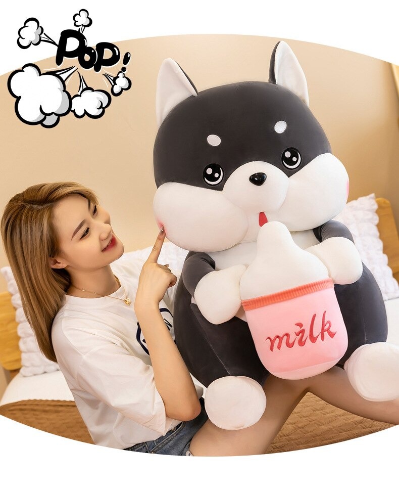 ✨Gấu bông chó Husky ôm bình sữa siêu dễ thương – Quà tặng thú nhồi bông chó má phệ bú bình – Size từ 50 cm đến 80 cm – Gối ôm chó Husky milk cho bé ngủ ngon