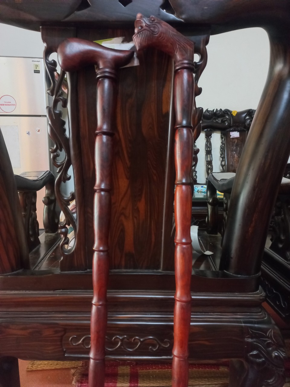 ✨Gậy batong hỗ trợ đi lại dành cho người già bằng gỗ trắc đỏ đen kt 90×13×3.5cm