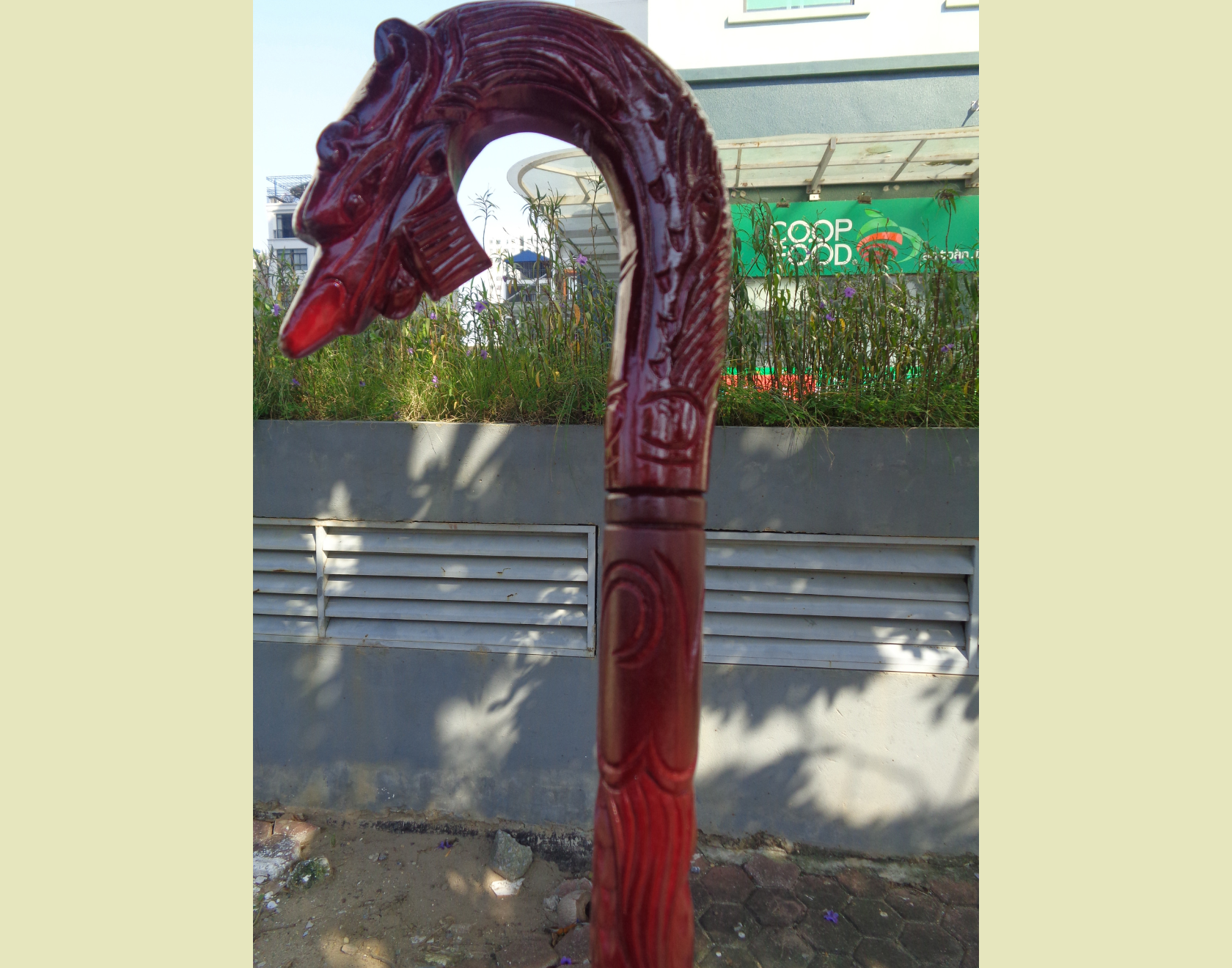 - Đầu gậy batoong, có đầu cao su chống trượt Gậy batoong cho người già Gậy batoong chia làm hai đoạn, có chốt bằng thép rất chắc chắn, thuận tiện trong quá trình đi du lịch hoặc di chuyển Gậy batoong gỗ cao cấp Gậy batoong chạm khắc hình đầu rồng, thanh lịch sang trọng, vừa tay cầm cho bước đi vững chắc Cây gậy batoong được gỗ xà cừ 100% gỗ tự nhiên, mầu nâu- cánh dán, thân được trạm rồng, con rồng thể hiện sự cao quý dành cho bậc vua chúa thời xưa, nay được người thợ trạm lên cây batoong làm tôn lên lòng tôn kính dành cho người cha mẹ, dành cho người già, cũng cho người tạo phong cách với cây gậy chống batoong trạm rồng ý nghĩa. Gậy gỗ batoong Quà tặng bố mẹ nhân dịp mừng thọ, làm quà cho bố mẹ đám cưới vàng, cưới bạc thể hiện con cháu, sự kính trọng đối với bậc sinh thành Trọng lượng: 800gr +50gr Kích thước: Dài 90 x 13x 13 x 3,5 cm đầu rồng, thân 3,2 x chân 2,6cm Hộp bao gói: 60 x 15 x 4 cm Trọng lượng bao gói: 890gr