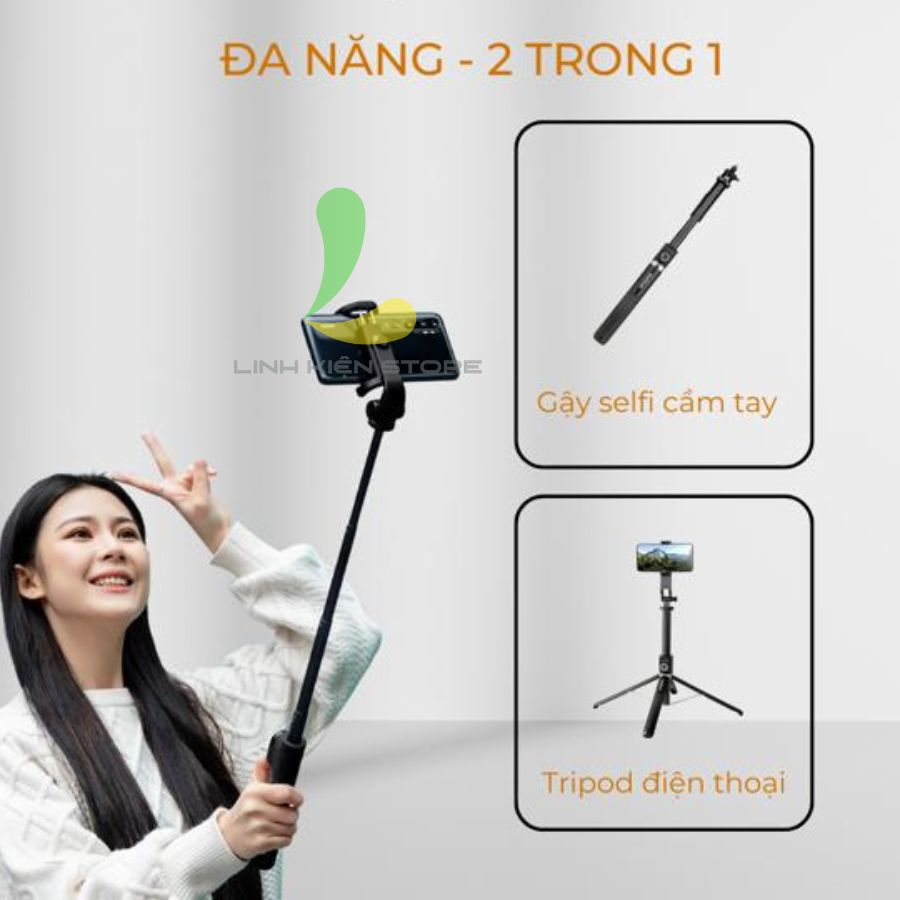 Mua tại TiktokTÍNH NĂNG NỔI BẬT - Khả năng chống rung điện tử cực tốt - Độ dài tối đa lên đến 86cm tha hồ selfie - Khóa ngang tự động 180 độ, chuyển đổi màn hình
