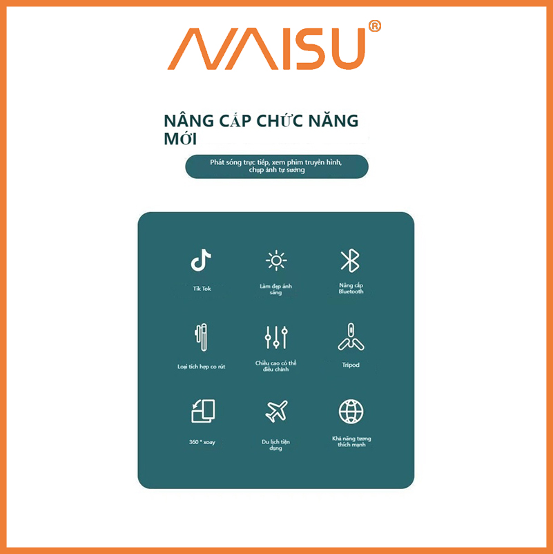 TÍNH NĂNG NỔI BẬT - Khả năng chống rung điện tử cực tốt - Độ dài tối đa lên đến 86cm tha hồ selfie - Khóa ngang tự động 180 độ, chuyển đổi màn hình