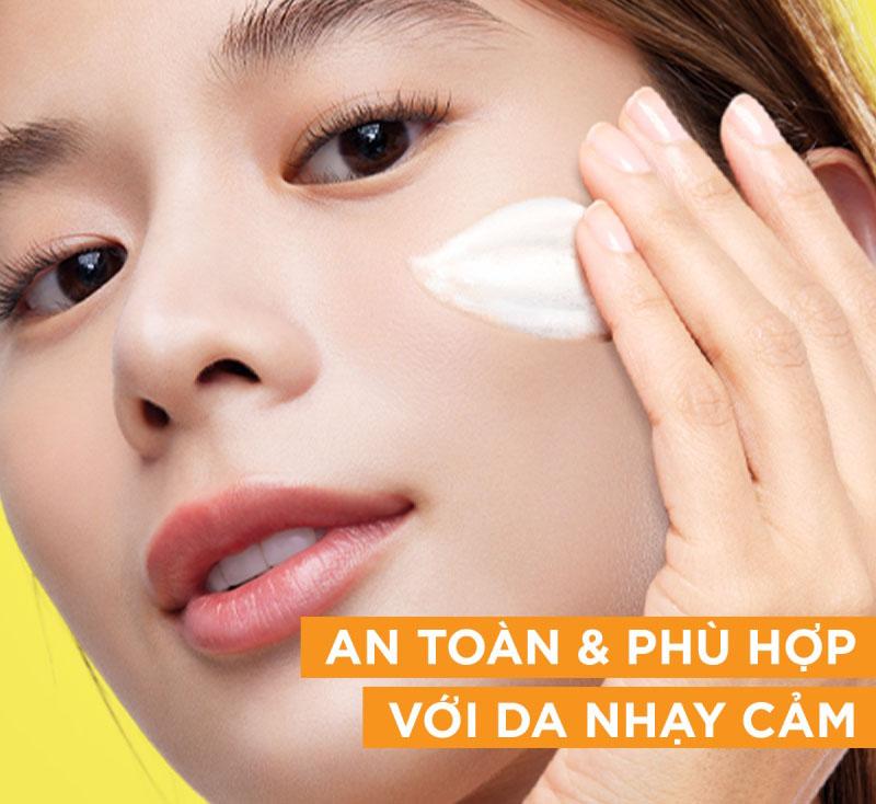 - Dịu nhẹ sạch sâu chứa Vitamin C, làm sạch da mặt, lấy đi bụi bẩn mà không gây khô rát da.