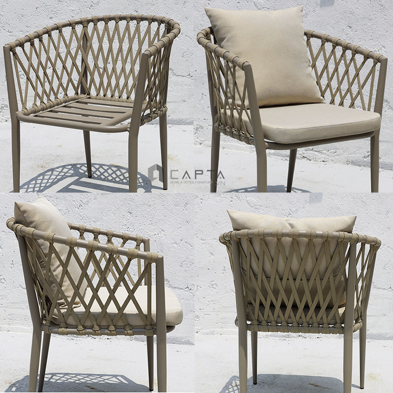Mua tại TiktokGhế cafe thư giãn ban công có gối nệm CC2030-A Nội thất Capta Ghế ngoài trời lưng đan đây dù chống thấm nước có tay tựa