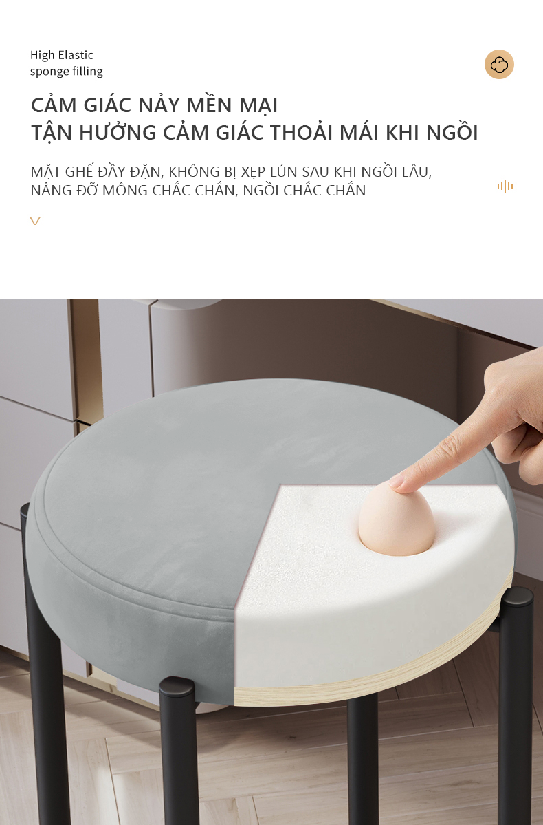 Bộ sản phẩm gồm: - 4 ghế đôn ngồi được bọc bằng chất liệu vải nỉ mát kiểu tròn làm thon gọn cho phòng khách nhỏ, tiện dụng, có thể làm đôn ngồi chơi, ngồi