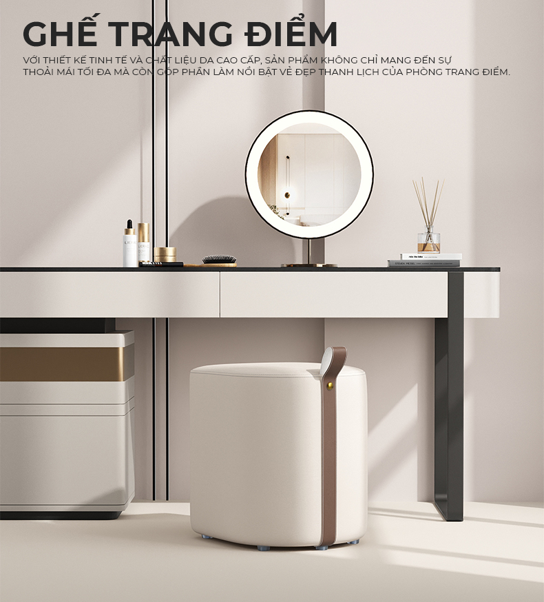 - Công năng: Ghế đôn sofa, ghế bàn trà, bàn trang điểm, làm việc cực xinh