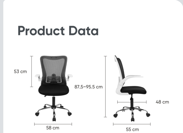 - Chất liệu: Chân ghế khung thép chắc chắn; Khung ghế nhựa ABS; Thân ghế vải lưới siêu thoáng khí; Đệm ghế mút bọt biển