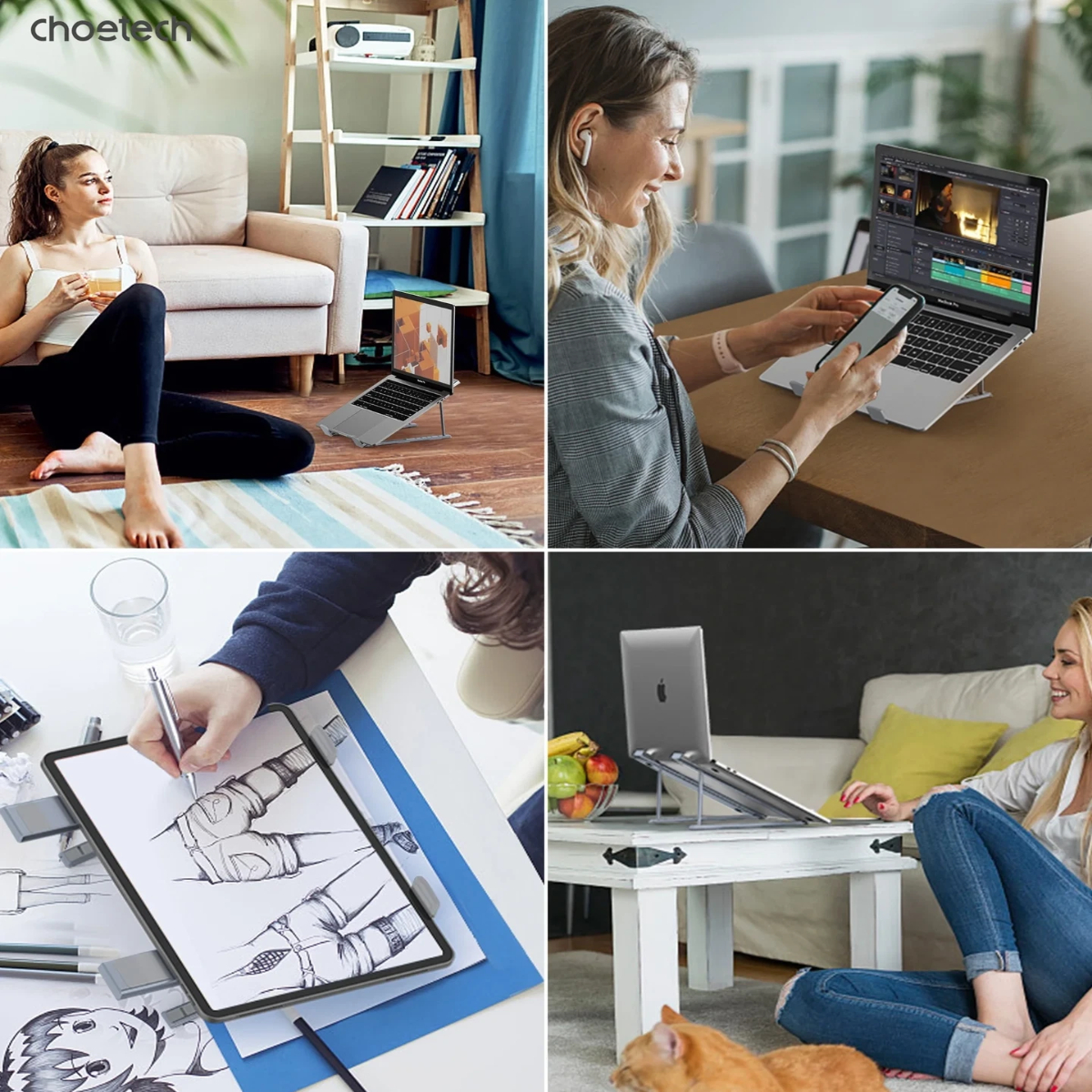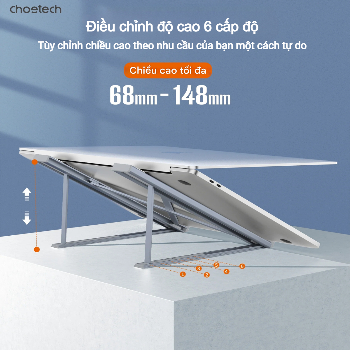 ✨Giá đỡ laptop tản nhiệt gấp gọn Choetech H055 cho máy từ 9 đến 17 inch (Hàng chính hãng)