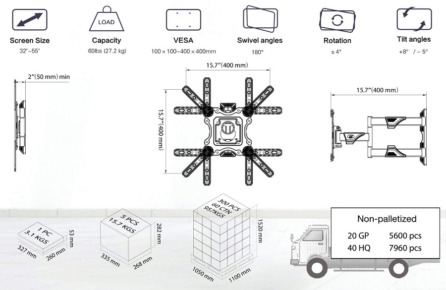 Chi Tiết Giá Treo Tivi Xoay Đa Năng NB-P4 (32"- 55") Chính Hãng 100%