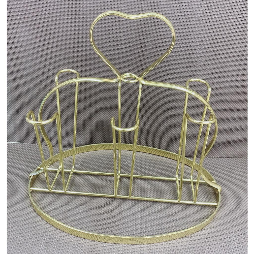 Giá úp cốc cao cấp màu vàng tay cầm trái tim - Chất liệu Inox vàng gương -Kích thước: 16*25.2*24cm - Chiều dài thanh giữ cốc là 15cm, phù hợp với các loại cốc ,