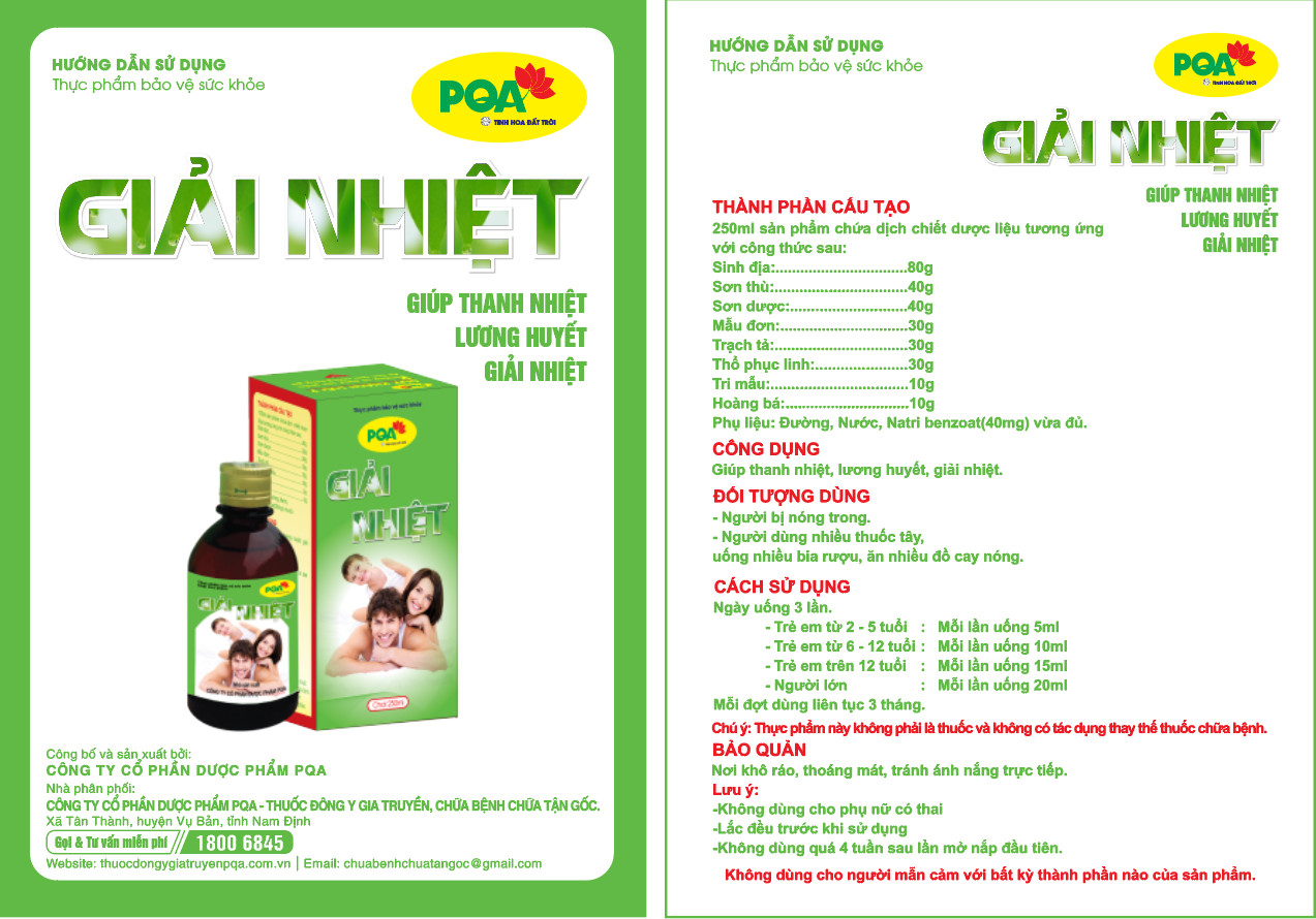 .Giải Nhiệt PQA Thành Phần Từ Thiên Nhiên Giúp Thanh Nhiêt Lương Huyết Dùng Cho Người Bị Nóng Trong Hộp 125ml THÔNG TIN SẢN PHẨM: - Xuất xứ: Việt Nam - Dung tích: 125ml -