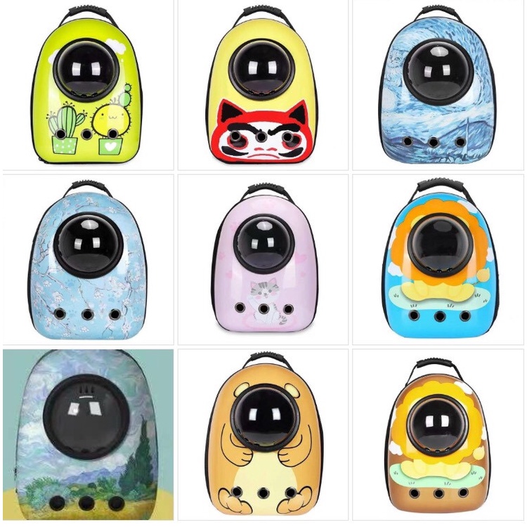 Chất liệu: nhựa cao cấp PVC Balo phi hành gia cho chó mèo là sản phẩm linh động cho khách hàng khi mang theo thú cưng của mình đi chơi. Balo phi hành gia có thiết kế thông minh, thông thoáng giúp cho thú cưng của bạn thoải mái và an toàn khi di chuyển. Vòm kính có thể thay thế bằng lưới nhựa và phù hợp với nhu cầu của bạn. Lưới nhựa tặng kèm ngay bên trong Balo phi hành gia mà bạn không cần phải mua thêm. # Cách sử dụng balo phi hành gia: Phía sau balo có dây kéo khóa, bạn kéo dây kéo và cho thú cưng của bạn vào bên trong. Kéo toàn bộ khóa kéo về 1 bên mép, tránh không để khóa kéo trên đỉnh sẽ dễ tuột hoặc vô tình làm tuột. Kiểm tra lại thú cưng của bạn qua vòm kính hoặc lổ thông gió 2 bên. Cách vệ sinh balo phi hành gia: Khi chó hoặc mèo của bạn tè hay đi bậy vào balo phi hành gia thì trước hết bạn nên dùng khăn giấy thấm bớt. Sau đó, tháo toàn bộ nắp lưng và ngâm trong thau nước khoảng 5 phút. Dùng xà bông chà lên mặt trong, tẩy sạch chỗ bẩn. Phơi khô nơi có nhiều nắng để làm sạch và khử khuẩn balo phi hành gia. Đề nghị nên vệ sinh balo sau 4 lần sử dụng hoặc 1 tháng 1 lần.