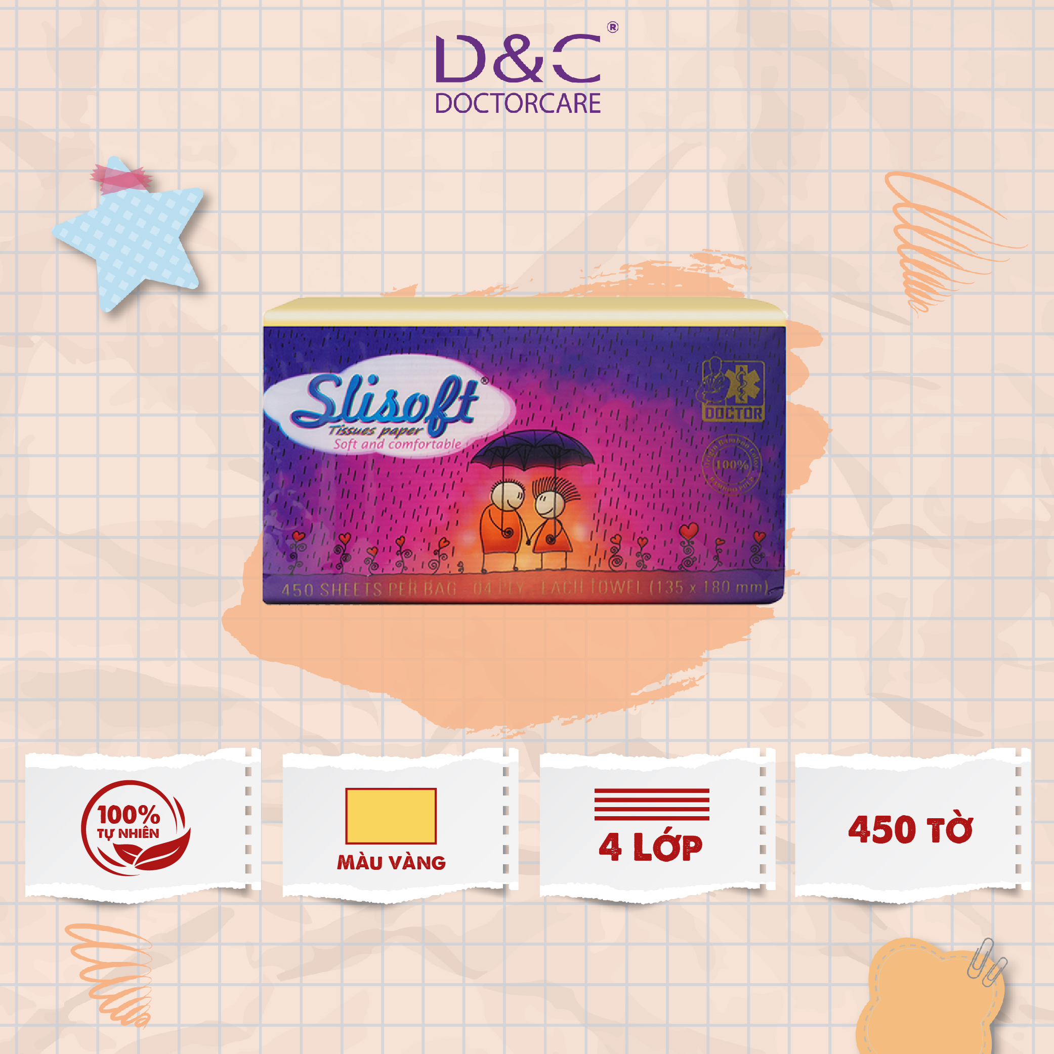 - Tên sản phẩm: Giấy ăn Slisoft màu Vàng tự nhiên