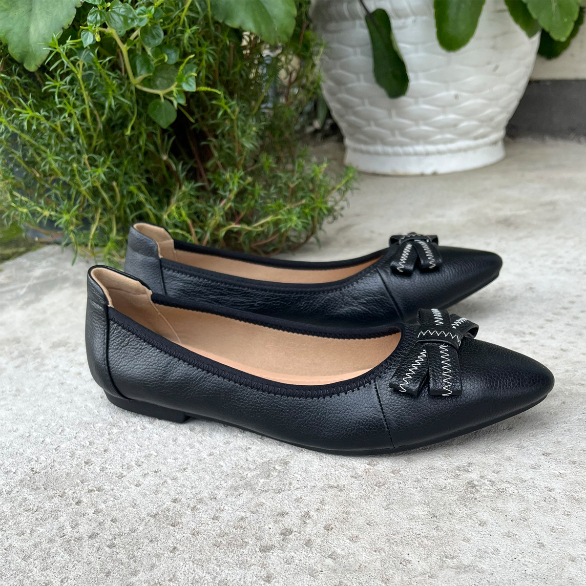 - Giày búp bê da bò mũi nhọn đế bằng Trường Hải da mềm màu đen GBB125 CÓ DÁNG FORM chuẩn ôm chân