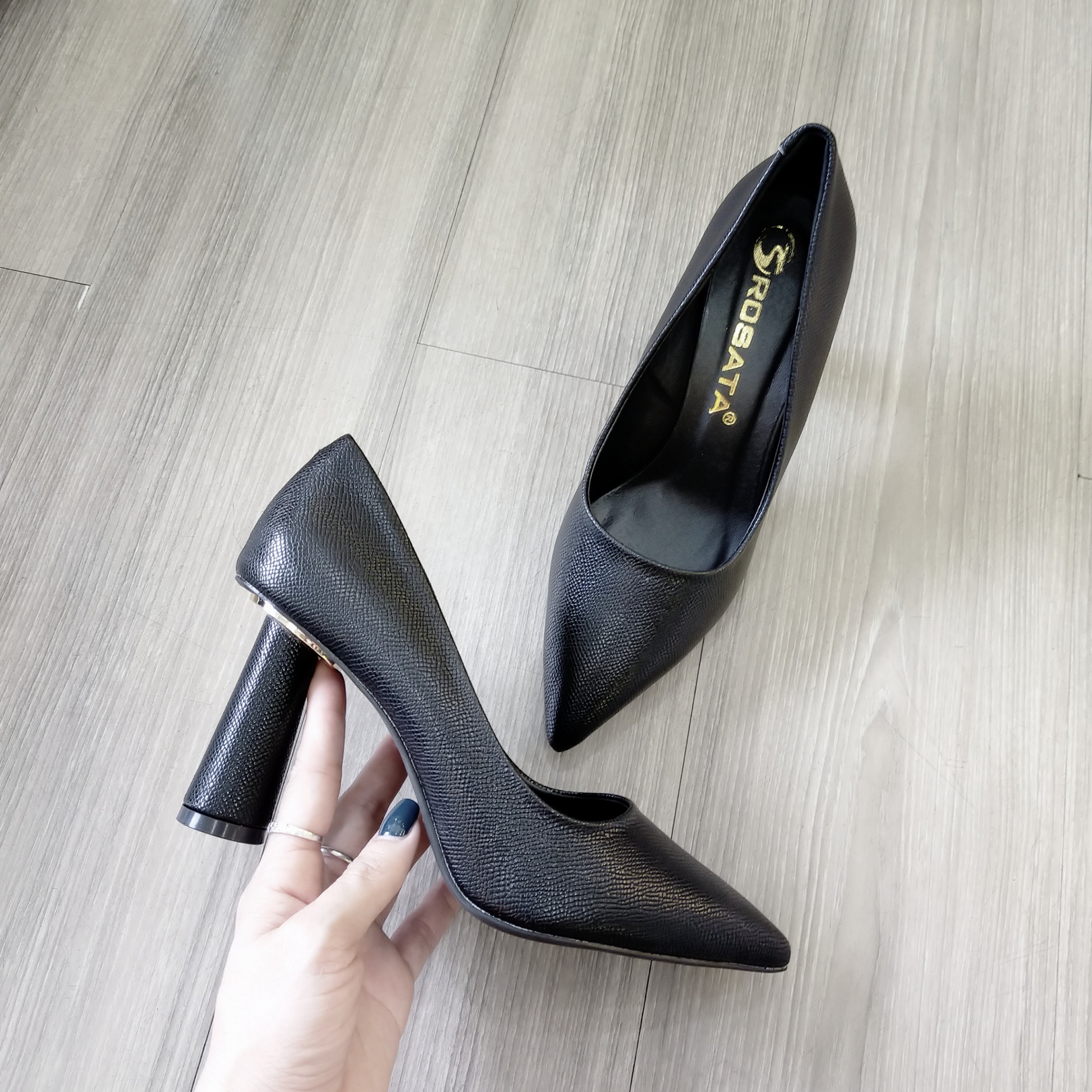 Giày cao gót nữ đẹp đế vuông 9 phân hàng hiệu rosata màu đen da ro377 ------------------------------------------------ Mô tả chi tiết: - Thương hiệu: rosata - Mã sản phẩm: ro377 - Kiểu dáng: Giày cao