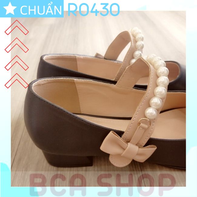✨Giày cao gót nữ màu đen 4p RO430 ROSATA tại BCASHOP kiểu dáng công chúa với quai ngang đính ngọc tr.ai và nhấn nơ