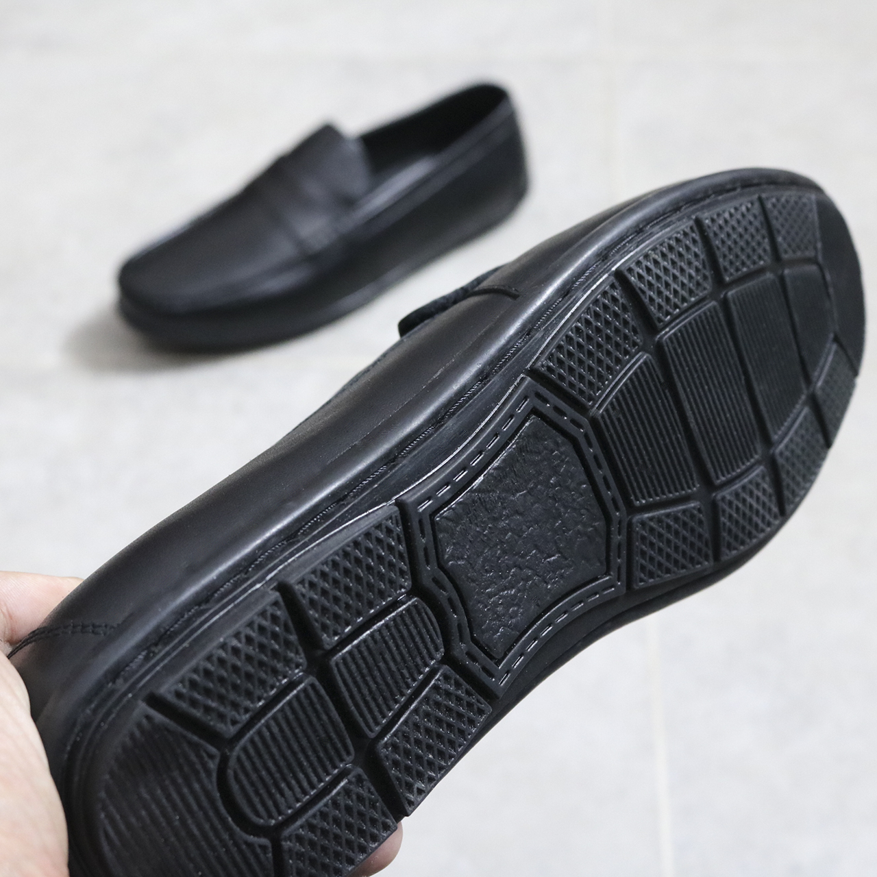 Giầy lười nam slipon da bò thật, đế cao su khâu liền da chắc chắn