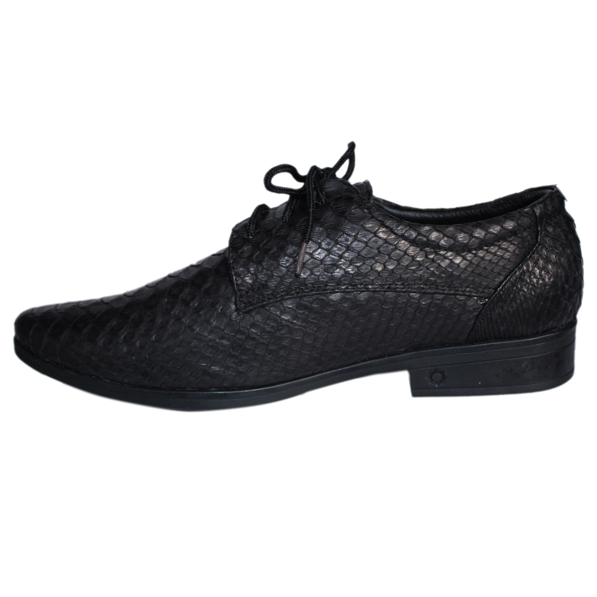 Giày tây nam Huy Hoàng da bò vân da trăn cột dây màu đen 7798