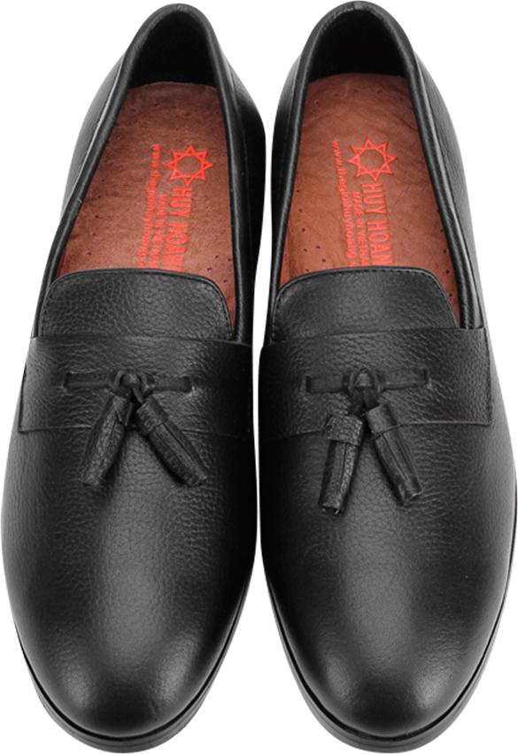 Giày nam Huy Hoàng xỏ chân phối nơ màu đen 7194
