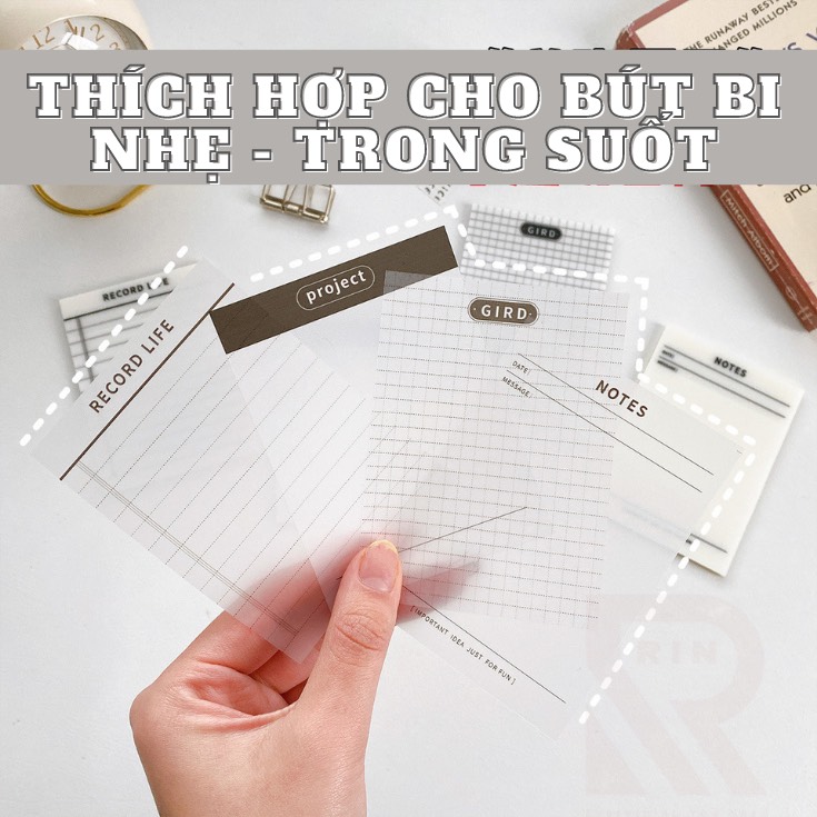 Giấy trong suốt giúp ghi chú nhưng vẫn thấy được nội dung có sẵn cũng như thuận tiện cho việc đánh dấu hơn