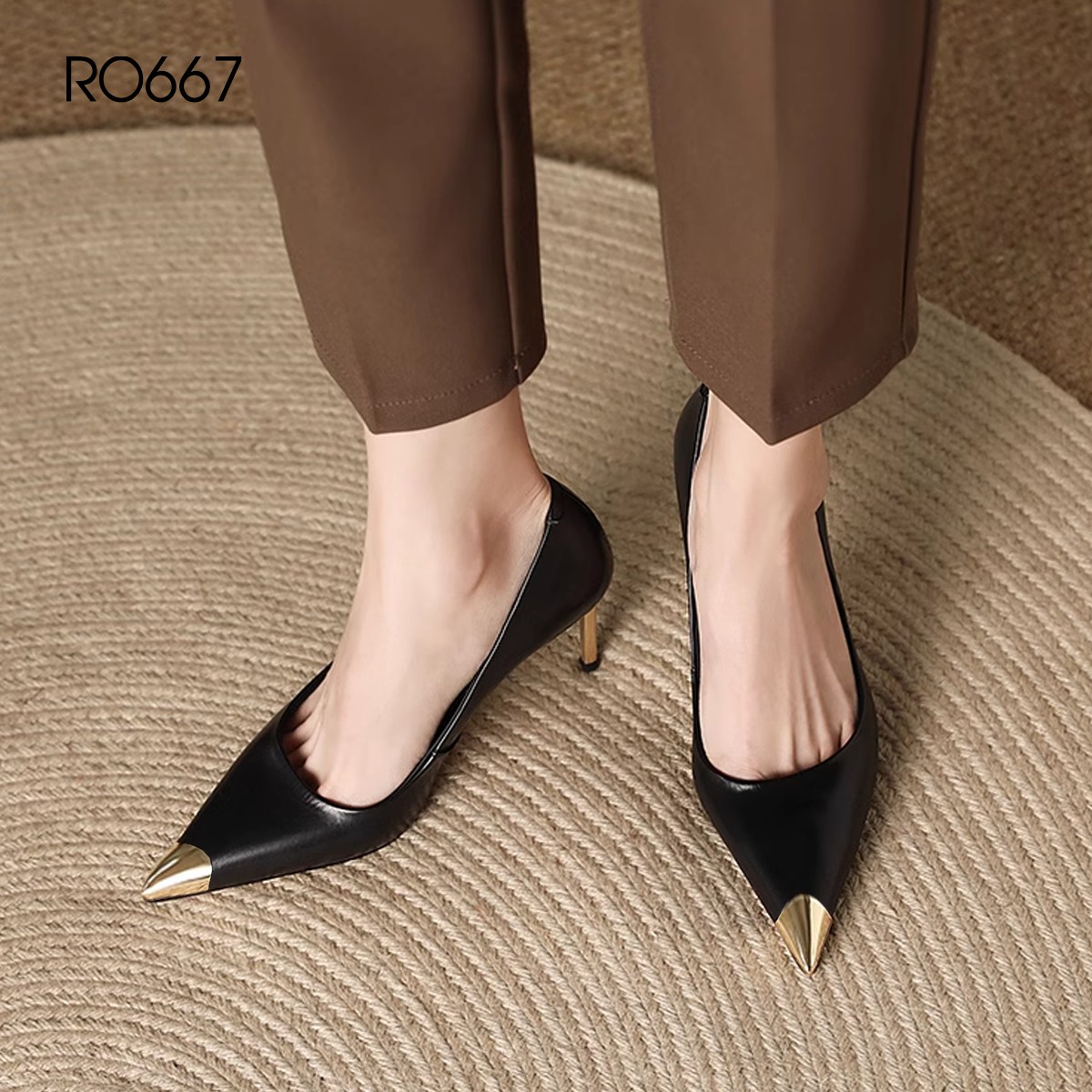 RO722 – Giày cao gót bít mũi hở gót thanh lịch, chuẩn style công sở hiện đại Thiết kế bít mũi nhọn phối quai hậu giúp cố định gót chân, không đau chân khi di