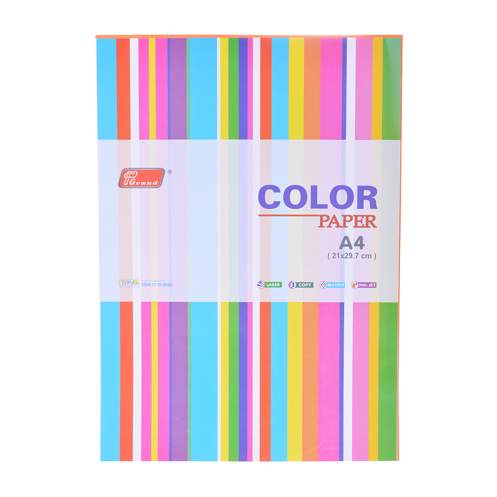 Giấy phù hợp với tất cả các loại máy in phun, máy in Laser, máy Fax laser, máy Photocopy, Giấy có nhiều màu dạ quang cho bản in độc đáo. Sản phẩm bao gồm 100 tờ, thuộc khổ A4, phù hợp với mọi nhu cầu in ấn hiện nay.