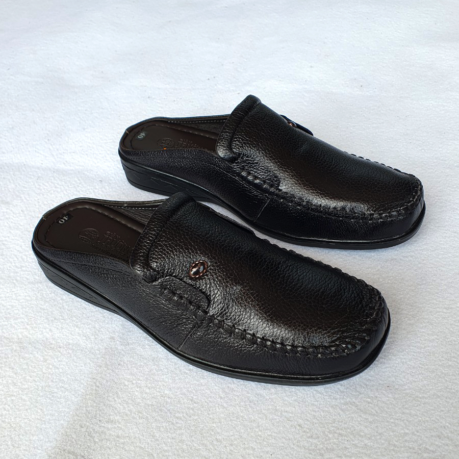 Dép bít mũi màu nâu Trường Hải da bò thật