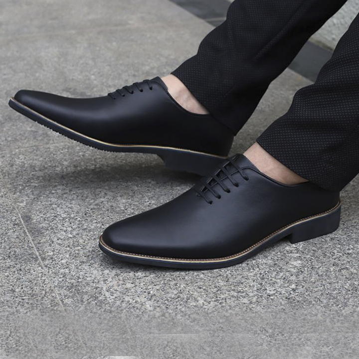 Giày tây nam đẹp da mềm mịn Blackman- Đế diễu- Dây buộc- Da Bò Nhập Khẩu Nguyên Tấm - Hành 1 Năm
