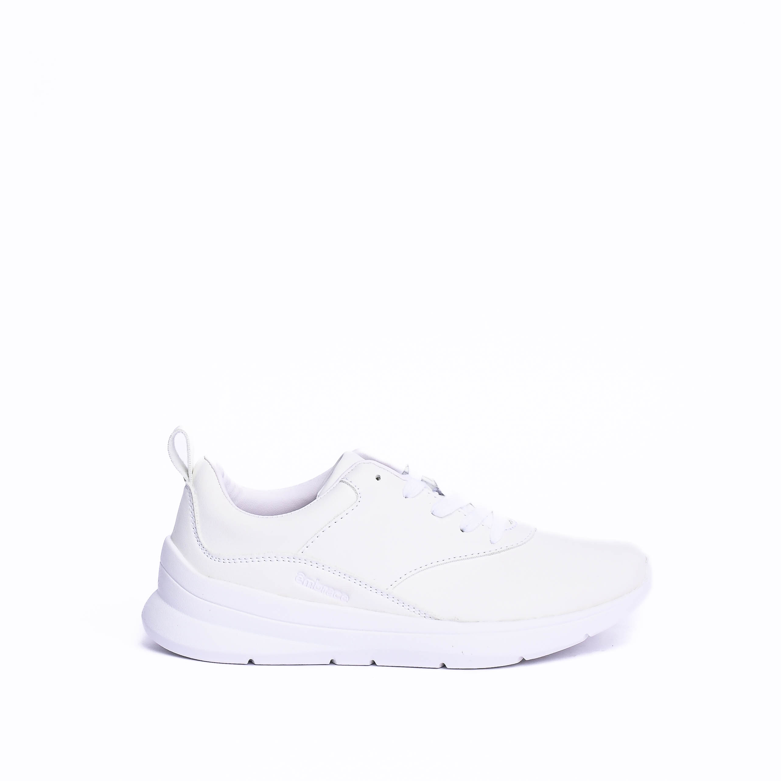 Đế giày - lựa chọn chất liệu Phylon làm nên đế giày thể thao cho các chị em. Vì tính chất nổi bật của vật liệu này là trọng lượng siêu nhẹ (nặng chỉ 300g/chiếc) và độ đàn hồi cao. Nhờ đó, phần lớn khách hàng sử dụng sản phẩm ngay từ lần đầu tiên đều có cảm giác đôi chân “nhẹ như bay”, bước đi thoải mái và thỏa thích vận động ở mọi tư thế theo cách riêng mà không lo đau mỏi chân. - Mặt đế thiết kế thêm những rãnh chống trượt, bố trí dày đặc nhằm tăng độ ma sát. Qua đó giúp người mang vận động thoải mái, bước đi vững chắc và bảo đảm an toàn tối đa, nhất là khi di chuyển trên những địa hình trơn nhẵn hoặc thời tiết ẩm ướt. Thân giày - Thân giày áp dụng công nghệ đan 2 sợi độc đáo. Nhờ vậy, sản phẩm vô cùng nhẹ và thoáng, mang lại cảm giác thoải mái nhất có thể cho người sử dụng. Không những vậy, công nghệ đan 2 sợi còn bảo đảm độ bền chặt của từng chi tiết như cổ giày, quai giày, dây giày… giữ đúng form dáng lâu dài, ít biến dạng hoặc giãn sau một thời gian sử dụng. - Bên cạnh đó, thiết kế thân giày được cải tiến mạnh mẽ bằng chất liệu vải canva, bảo đảm cảm giác thoải mái nhất có thể và hạn chế nóng bức, bí bách nếu phải mang giày trong thời gian dài. -