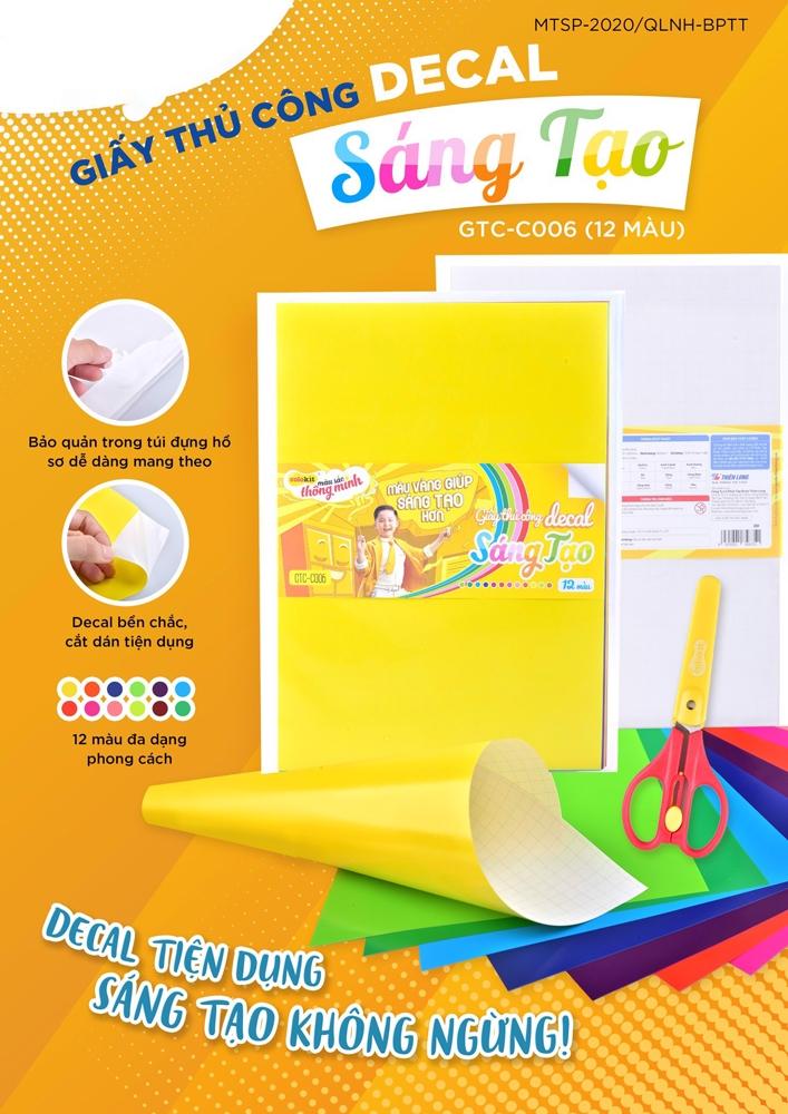 Bộ sản phẩm bao gồm 12 tờ với 12 màu sắc đa dạng tươi sáng và phong cách giúp bé thoải mái sáng tạo theo ý thích của mình. Cấu tạo giấy decal rất dễ dàng sử dụng, bạn chỉ cần cắt hình dạng theo ý thích hoặc xé dán một cách nhanh chóng. Sản phẩm được bảo quản trong túi đựng hồ sơ tiện lợi và dễ dàng mang theo.